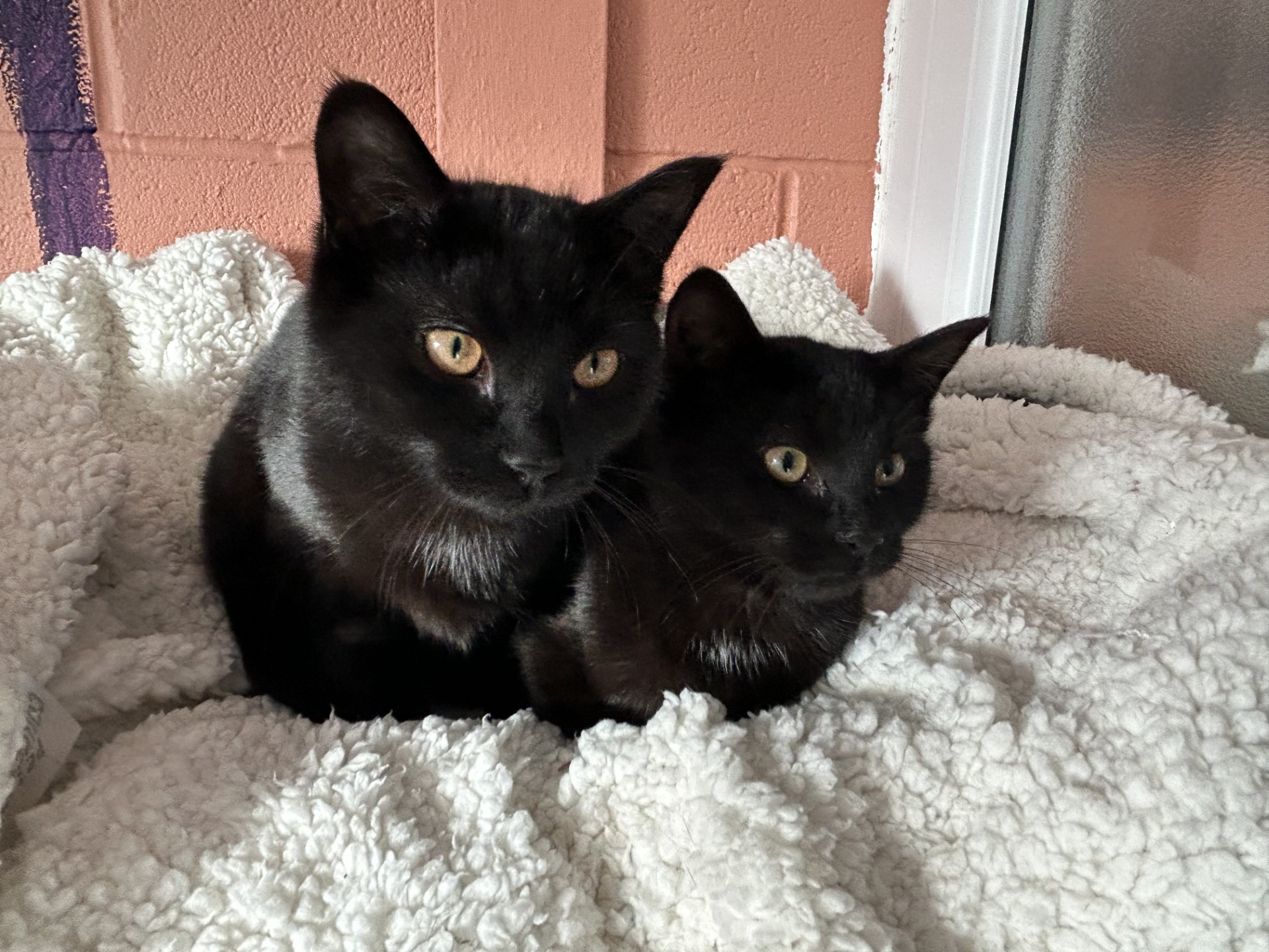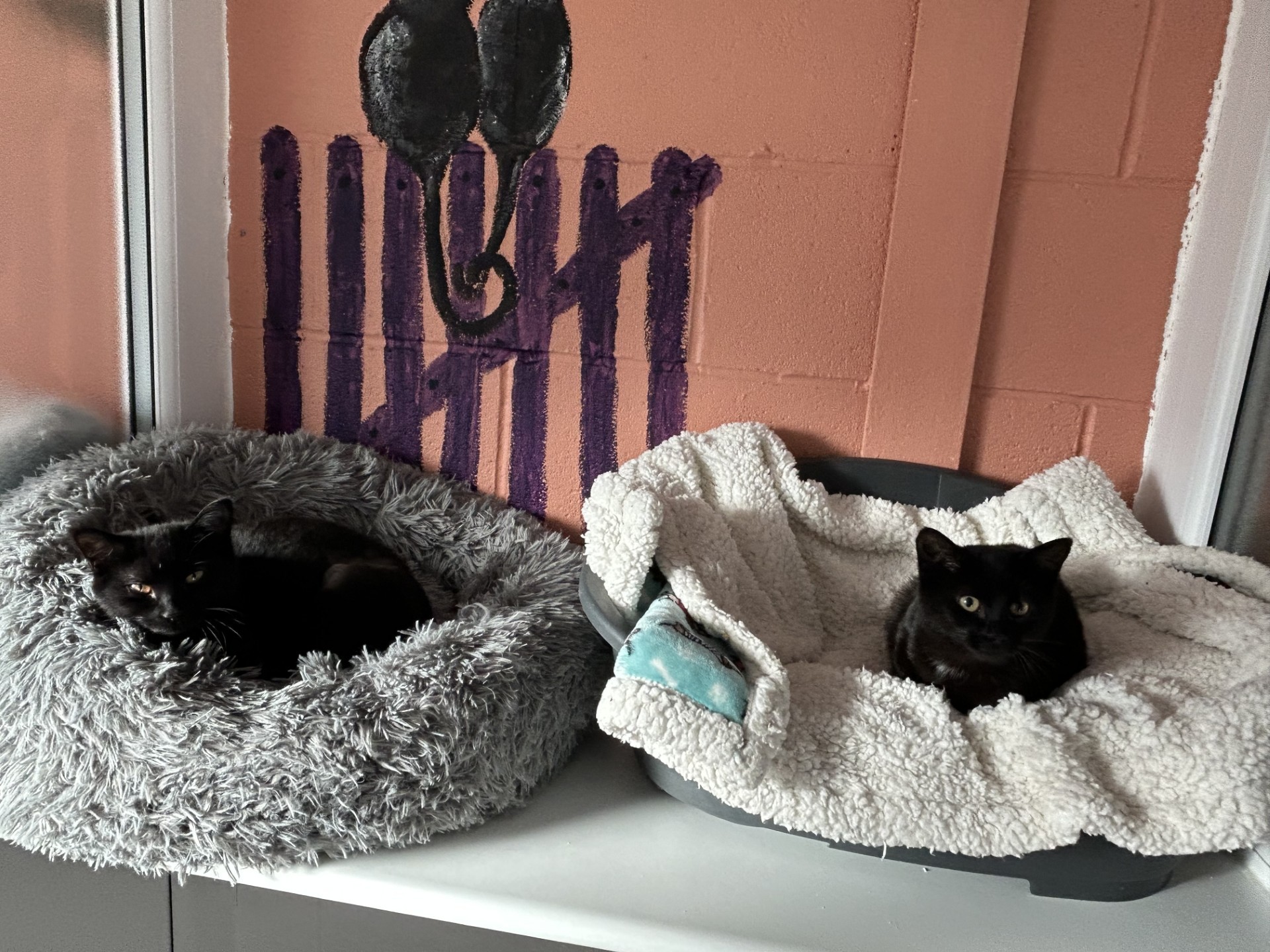 About me: Carla and Jordan were brought to the SAA by a member of the public with their 3 male siblings, JD, Turk and Elliot. They are sisters and the best of friends and are looking for a forever home together. They are high energy and full of curiosity – when you think no-ones looking you will turn around and see Carla and Jordan looking at you, staring straight out of the void! They are full of purrs and love to be stroked and Jordan even loves to be held for an extra snuggle!
