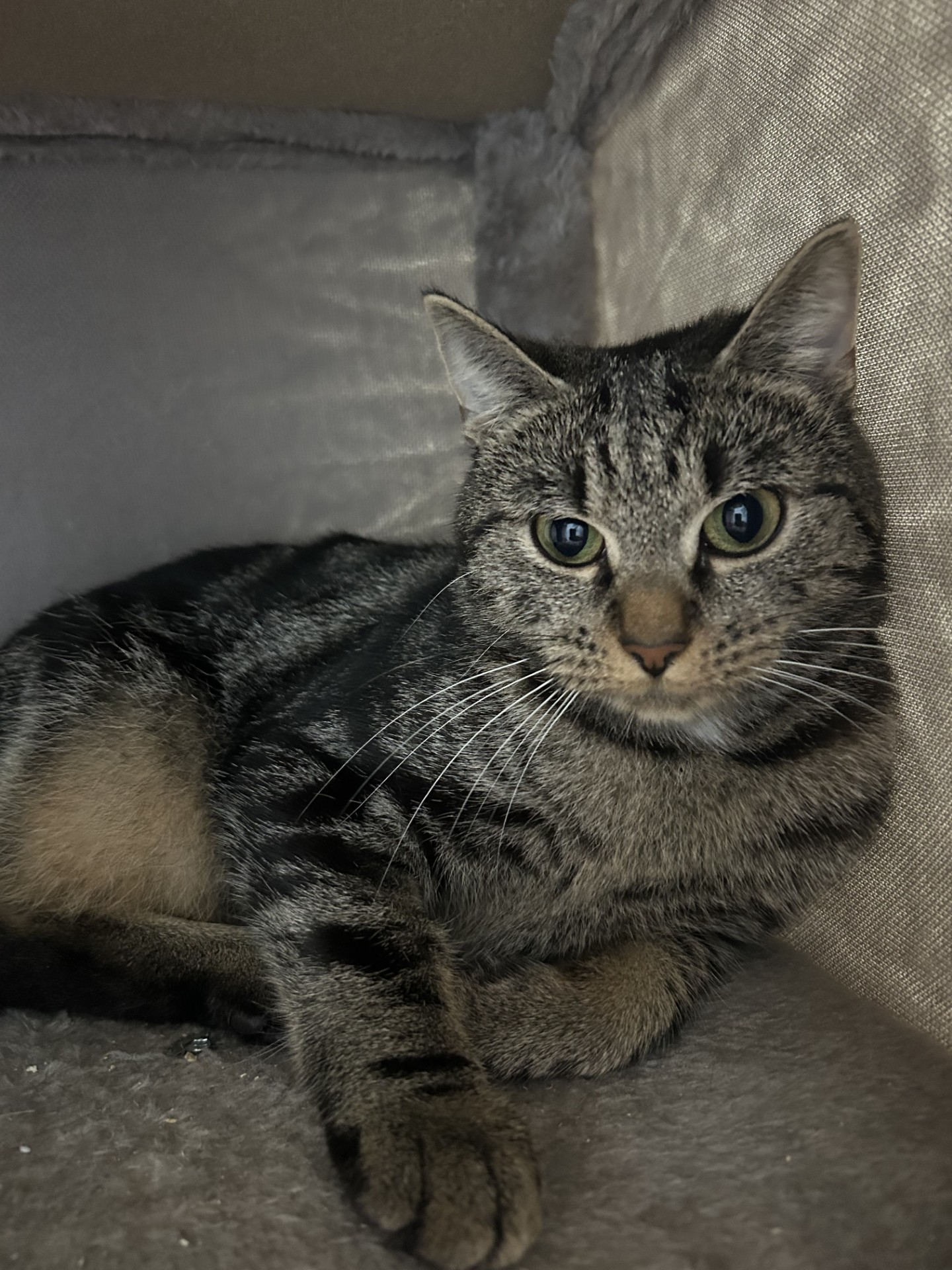 About me: The lovely little Vienna is still only a kitten herself but found herself giving birth outside, alone in a shed at just roughly 6 months old. She is now ready to find a home of her own where she can learn to be a kitten again. She is very nervous and shut down at first but she enjoys a fuss and is very playful. Every morning we come in to a pen that has been very well played in overnight with toys everywhere, she just needs help finding the confidence to play like that in front of people. She needs a quite, calm home who will let her settle in at her own pace and find her confidence. She has so much potential and will be a lovely companion with a bit of patience and time spent offering treats and playing. She shows no aggression but just chooses to hide when over whelmed.