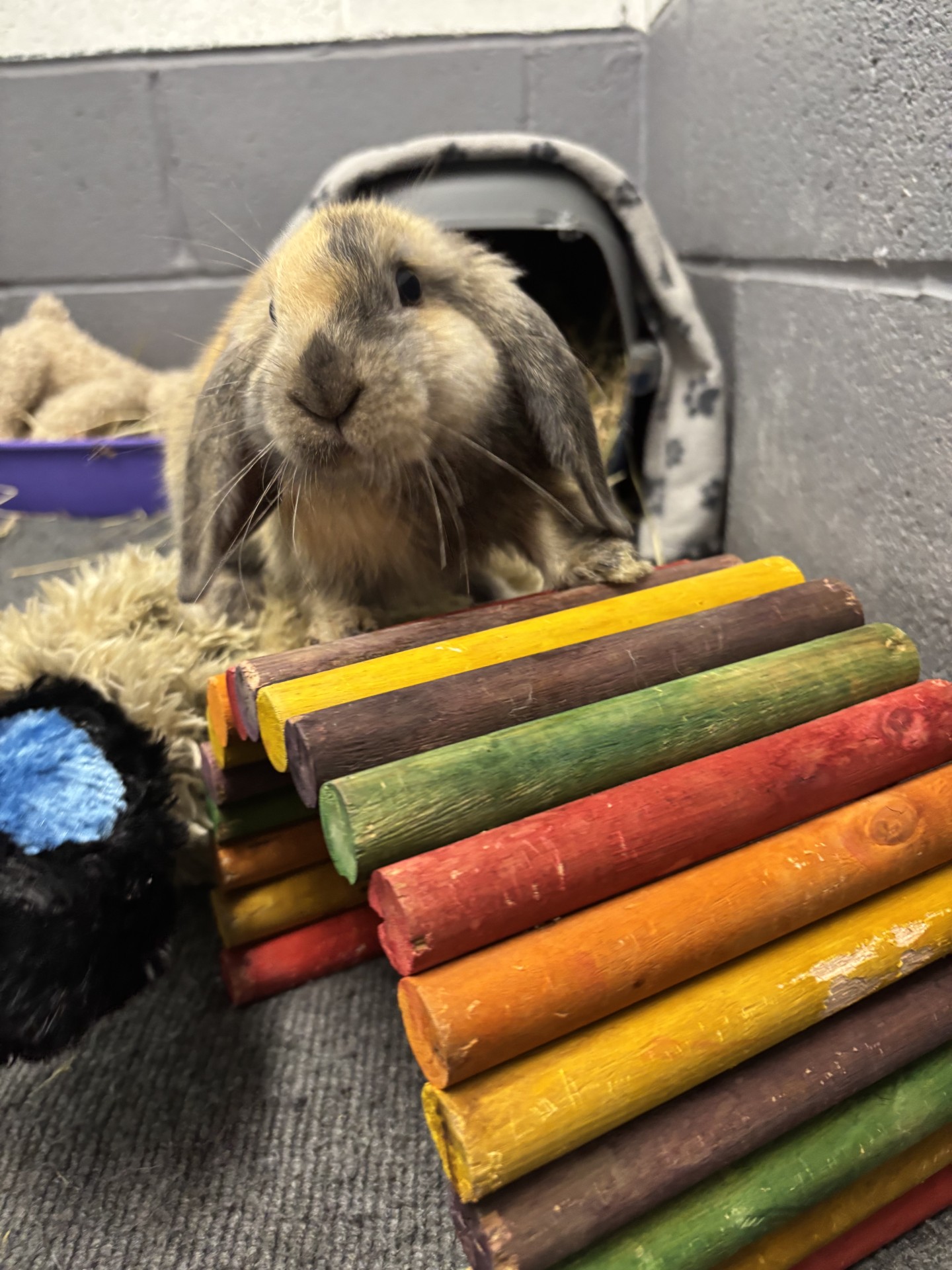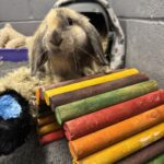 About me: Berry may be young but she has a very big personality and makes it well known! She loves attention and will follow you around and sit for cuddles but she does struggle when she isn’t getting attention and regularly nips people to get their attention, whilst this may not be intentionally aggressive, it does hurt so she will need an experienced rabbit owner. We hope this behavior will be something that reduces when she is bonded with other rabbits but we can’t guarantee this so please do not apply if this puts you off. Berry will need to be bonded with a rabbit who will give her the companionship she is desperate for, she may be an ideal match for someone looking to add to their existing group so there are several rabbits to share the attention between! She is only young so is full of energy and loves food and enrichment as well as cuddles.