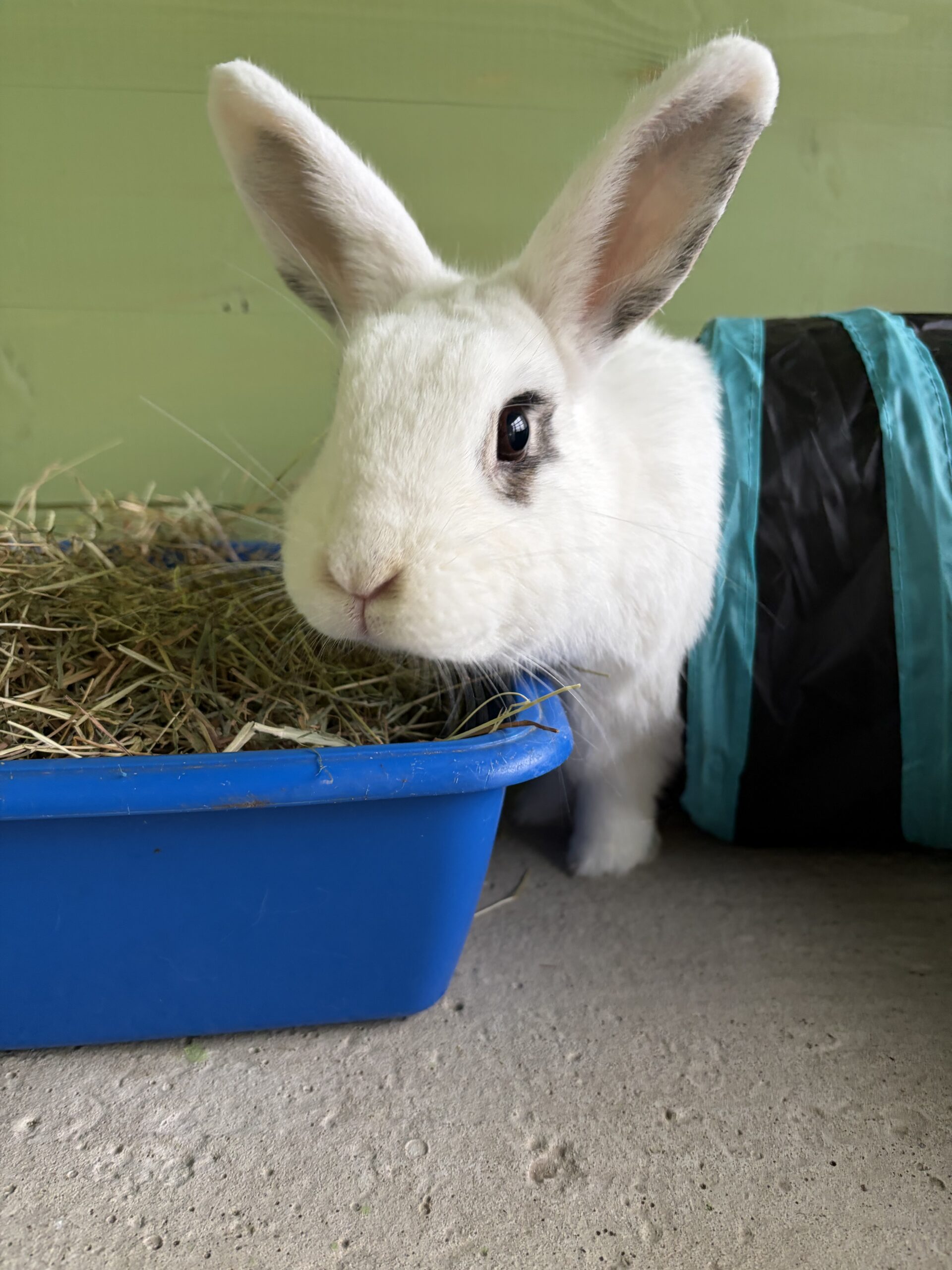This lovely boy us at 12 weeks old after being abandoned outside a vets with several other rabbits and over 2 years later, is still looking for a home of his own. He is friendly with people and will come over to greet you, especially if you have treats but can be a little reserved at first. He also has the most beautiful split coloured eyes. He has grown up with his brother who unfortunately passed away after a short illness. Ringo is clearly missing having a companion and would love to find a new home soon where he will bonded with 1 or more other neutered rabbits.